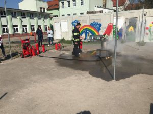 Im Laufe der nächsten Wochen und Monate werden nach und nach die Mitarbeiter der verschiedenen Kitas im Umgang mit handelsüblichen Feuerlöschern geschult. So können diese noch gezielter und schneller im Notfall eingreifen.