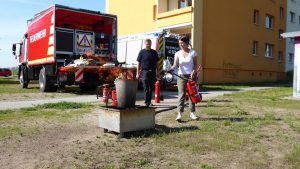 Am 12.05.2019 bei schönem Wetter konnten unsere Gäste viel über Feuerwehr erfahren. Es wurde fleißig gesägt, der Umgang mit dem Feuerlöscher geübt und unser Unfallauto zerlegt.